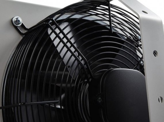 Осевой вентилятор диаметром 330 мм. создает воздушный поток длиной 9 метров и обеспечивает максимальную производительность до 1600 м³/ч.
